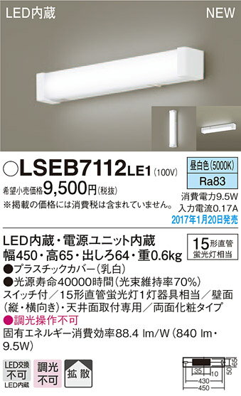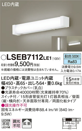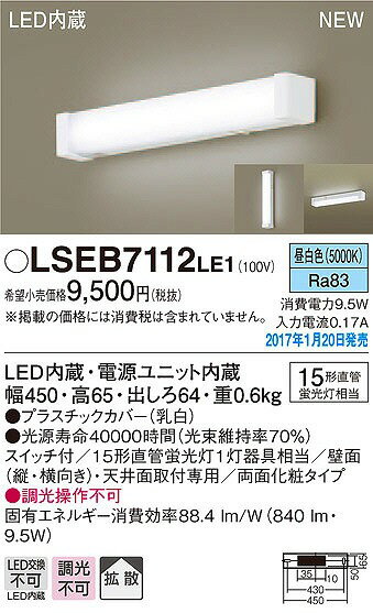 パナソニック Panasonic LSEB7112 LE1 天井直付型・壁直付型 LED(昼白色) キッチンライト・ブラケット