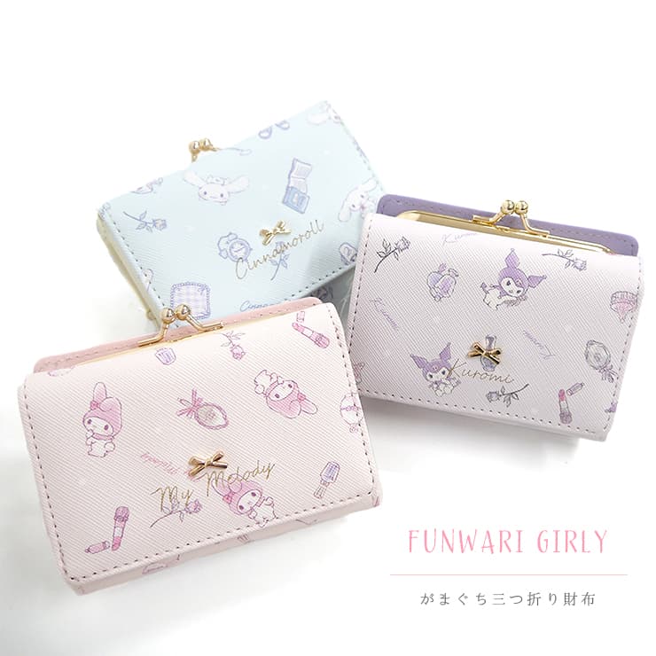 三つ折り財布 サンリオ マイメロ クロミ シナモロール ミニ財布 ゆめかわ がまぐち がまぐち三つ折り財布 パステルカラー かわいい sanrio ふんわりガーリー 使いやすい カードポケット多め 小学生 中学生 高校生 ガールズ