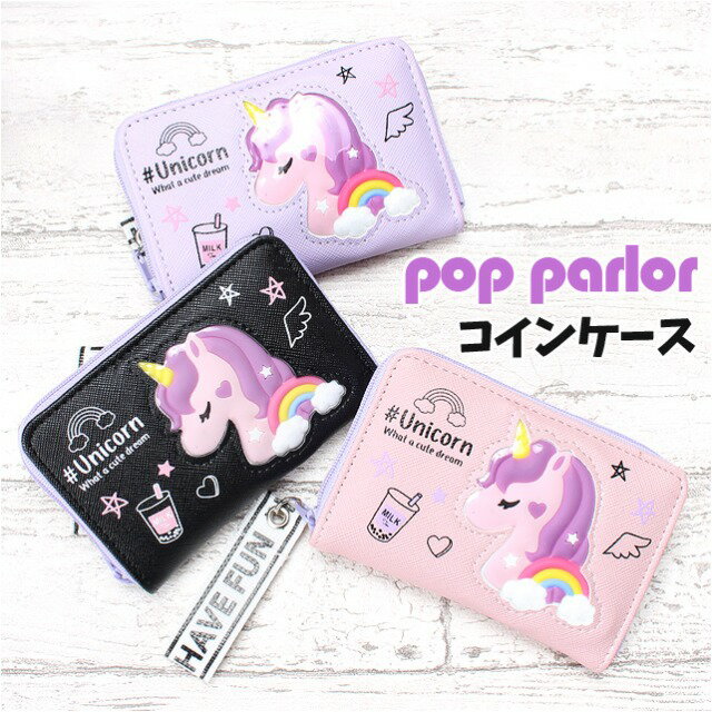 コインケース かわいい pop parlor(ポップパーラー)ゆめかわユニコーン コインパース sjy-107 キッズ・ベビー・マタニティ キッズ 財布・コインケース 小学生 幼稚園 女の子 さいふ サイフ 小銭入れ ミニ財布 ファスナー レディース ユニコーン 黒 紫 ピンク 原宿
